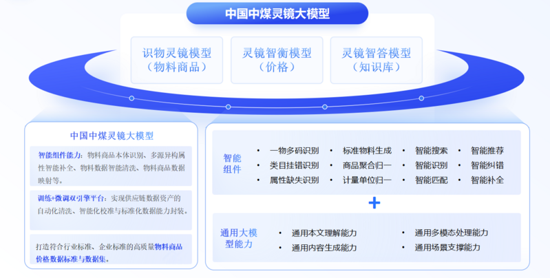 在数字中国战略的引领下,中国中煤大力建设智控管理体系。通过建设数智供应链,促进提升全要素生产率,逐步形成采购域新质生产力。“中煤灵镜供应链大模型”是智控采购域项目关键创新成果之一,包括“识物灵镜”“灵镜智衡”“灵镜智答”三大模型。