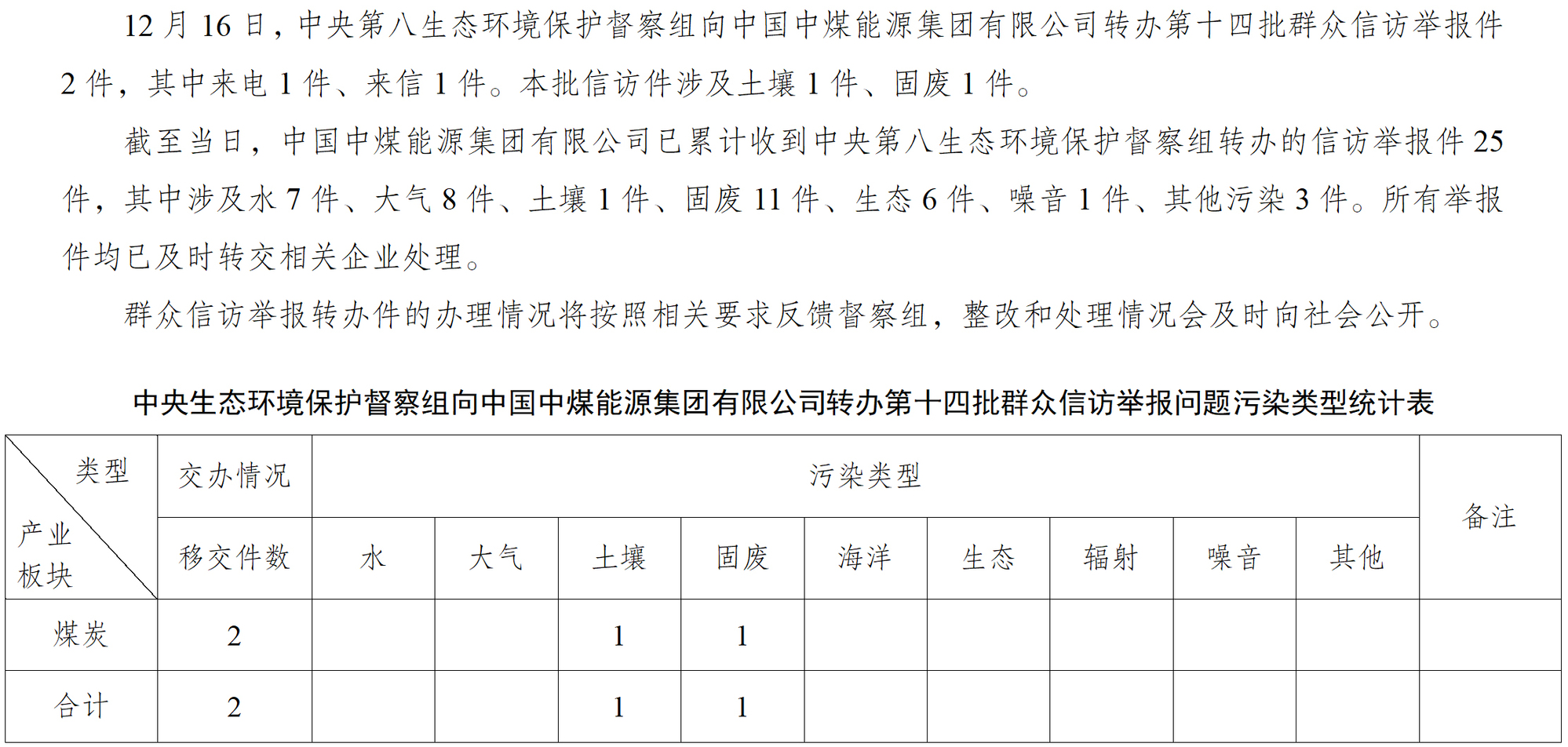 中央第八生态环境保护督察组向 转办第十四批群众信访举报件