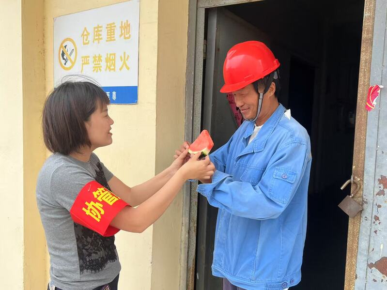 近日,物资贸易公司开展 “夏日送清凉” 活动,为基层库房保管员送去组织的关怀。女工协管员将西瓜等防暑降温物资送到他们手中,叮嘱他们劳逸结合,避开高温时段作业,做好自我防护。