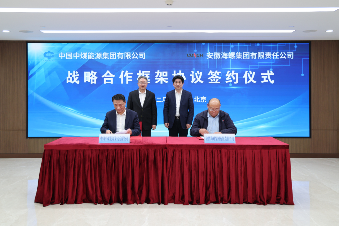 2月9日,中国中煤与海螺集团签署战略合作框架协议。中国中煤党委书记、董事长王树东在集团公司总部会见海螺集团党委书记、董事长杨军并见证签约。中国中煤党委常委、副总经理陈建,海螺集团党委委员、副总经理丁锋参加活动。陈建、丁锋分别代表双方签署协议。