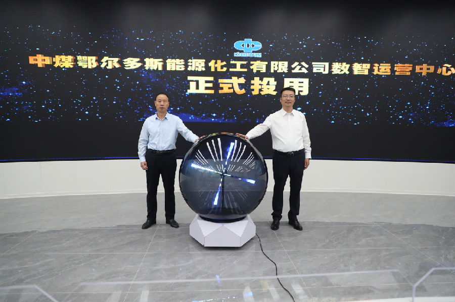 仪式伊始,与会人员共同观看了数智运营中心的建设历程回顾短片。随后,在全场热烈的掌声中,崔书明郑重宣布:“中煤鄂尔多斯能源化工有限公司数智运营中心正式投用!”在全体与会人员的见证下,马军鹏和崔书明共同按下启动按钮,标志着承载公司数字化转型重任的“智慧大脑”全面激活,正式投用。