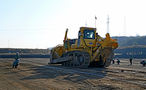 在开幕式上,总裁判长宣读大赛规则和奖励办法,裁判员代表及参赛选手代表分别宣誓。随后,全体人员观摩推土机司机实操比赛。