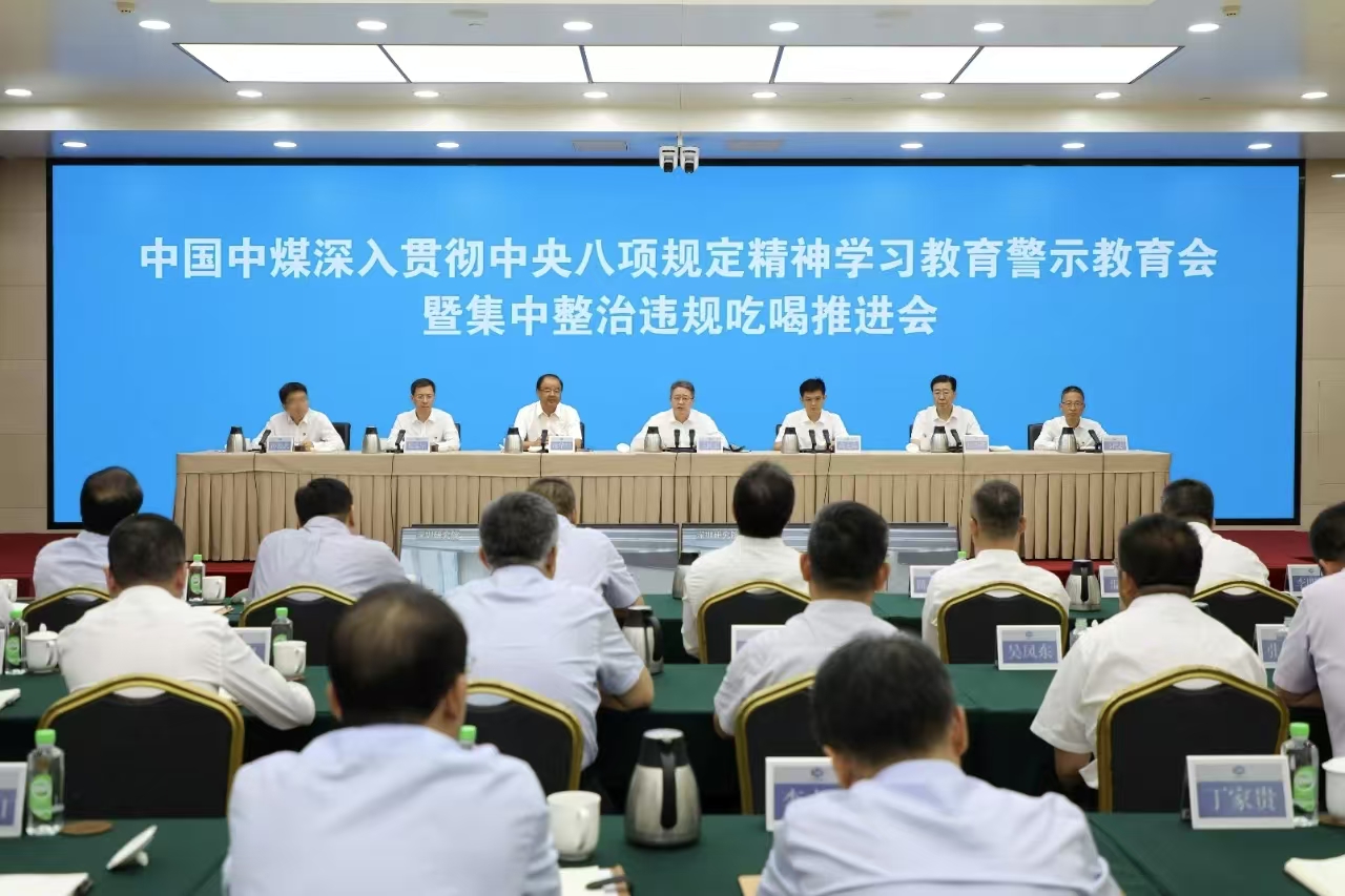 6月23日,中国中煤党委召开深入贯彻中央八项规定精神学习教育警示教育会暨集中整治违规吃喝推进会。会议深入学习贯彻习近平总书记关于加强党的作风建设的重要论述,通报违纪违法典型案例,认真贯彻落实党中央决策部署及国务院国资委党委关于集中整治违规吃喝的部署要求,组织观看警示教育片,对开展集中整治违规吃喝进行安排部署,教育引导党员干部进一步知敬畏、存戒惧、守底线,以作风建设新成效推动集团公司高质量发展。集团公司党委书记、董事长王树东主持会议并讲话,集团公司领导班子成员出席会议。