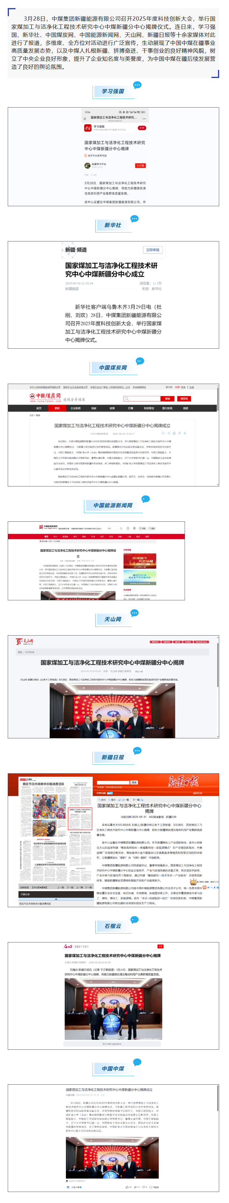 多家媒体报道国家煤加工与洁净化工程技术研究中心中煤新疆分中心成立