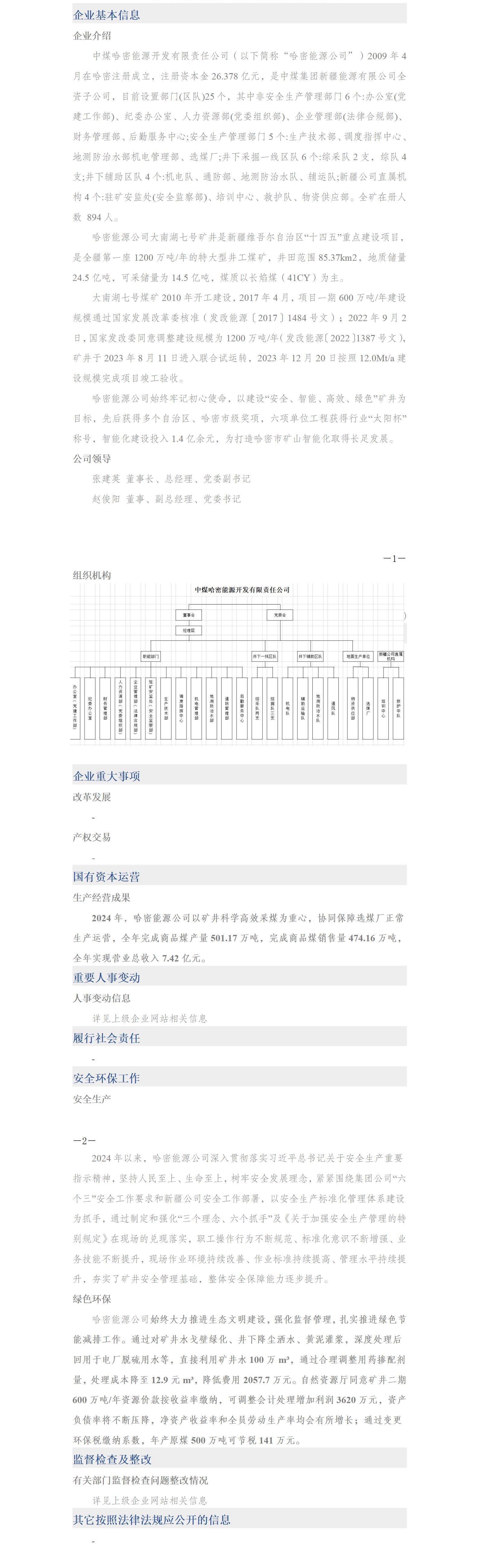 中煤哈密能源开发有限责任公司