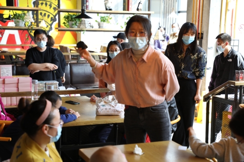 活动现场,志愿者们帮孩子们洗手、穿戴小厨师服,与孩子们一起唱歌、做“下雨”游戏、共同制作披萨,细心照顾、热情鼓励孩子们,与他们拉近距离。“阿姨,你可不可以坐到我这边来,看着我做比萨”,志愿小队很快就得到了孩子们的信任和依赖。