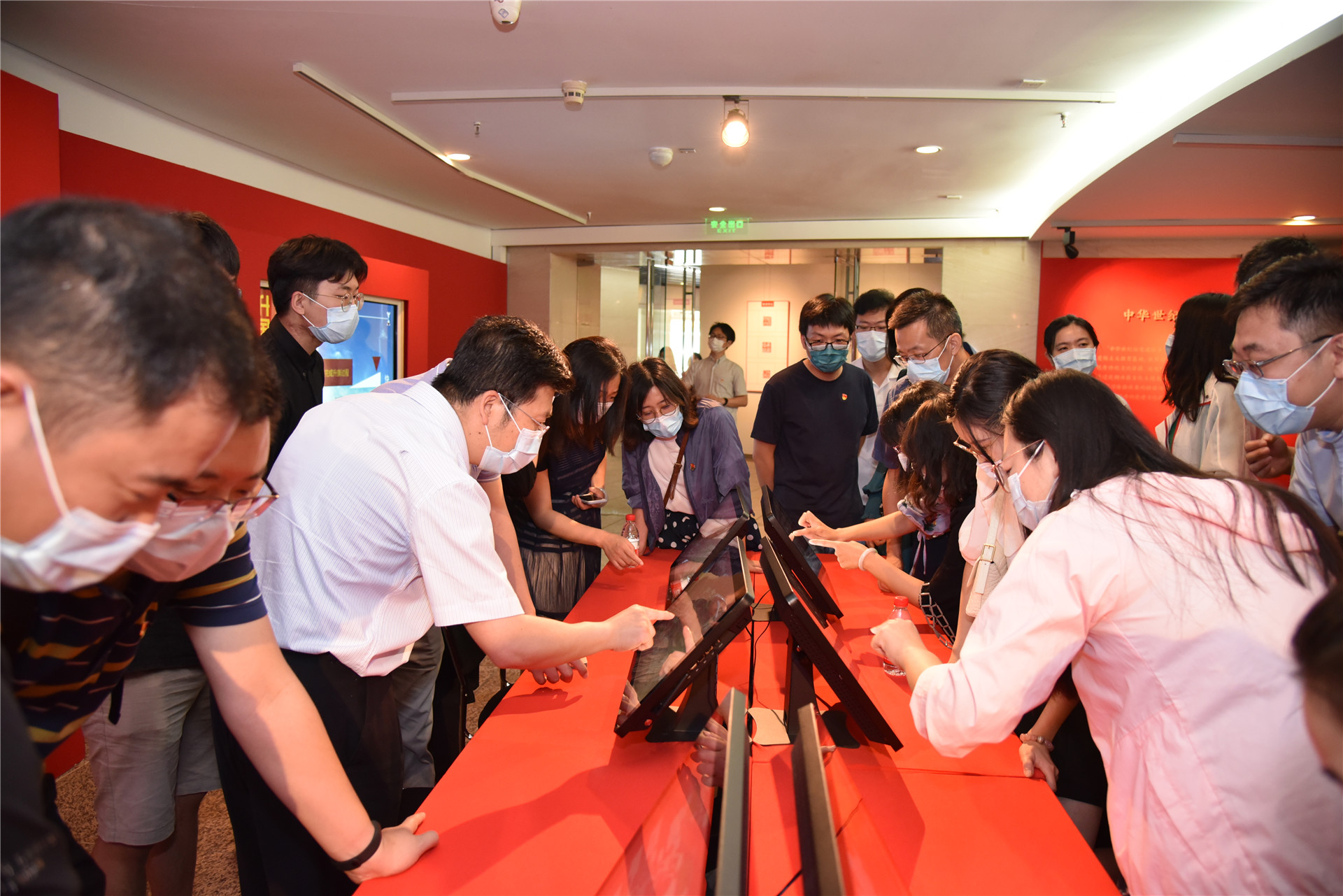 活动分参观展览、党建微课堂、篆刻体验三项内容。首先,引导员带大家回顾了20名革命先烈和12名新时代楷模的英雄事迹和初心使命,激情洋溢的讲解,一个个鲜活的人物形象跃然眼前,在场观众无不动容落泪。紧接着,世纪坛有关领导给公司党员带来一场生动有趣的多媒体党课,通过浸入式观摩、线上答题、互动游戏,大家进一步了解了党的基本知识、发展历程。最后,全体党员干部来到了篆刻体验区,亲手设计专属印章,将“初心”拓印在纪念证书上。