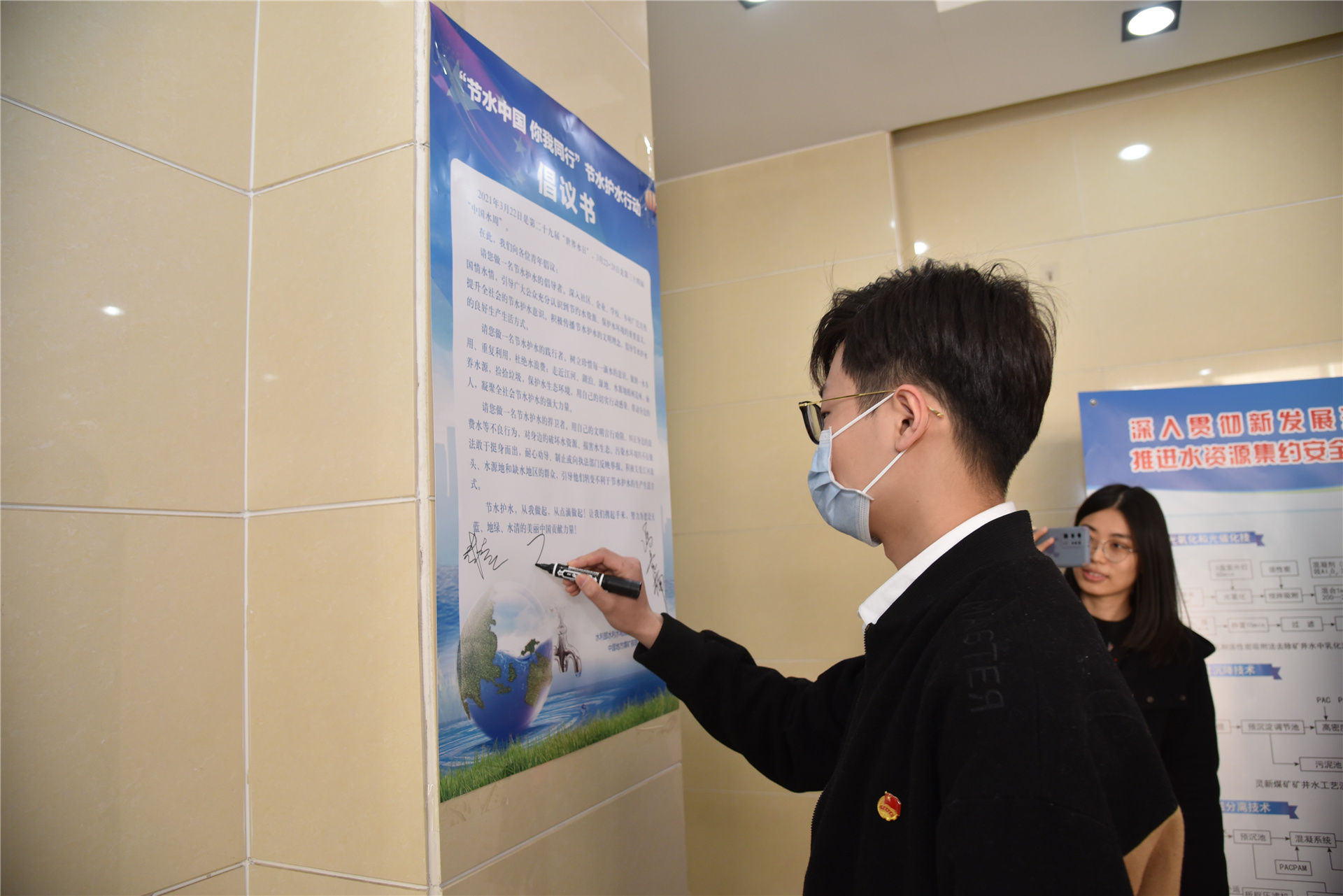 矿井水的处置与利用是深入贯彻新发展理念的重要环节,是推进水资源集约安全利用的关键手段。为了让团员青年深刻吸取事故教训,提高安全意识,公司团委制作专题宣传展板,详细介绍矿井水害的类型成因、应急处置及救援措施等相关知识。公司青年纷纷在“节水倡议书”上签下自己的名字,他们坚定地表示,要做一名节水护水的倡导者、践行者和捍卫者,用自己的文明言行劝阻、纠正身边浪费水的不良行为。用自己的实际行动感染、带动身边人,凝聚全社会节水护水的强大力量,从我做起,从点滴做起,努力为建设天蓝、地绿、水清的美丽中国贡献力量!